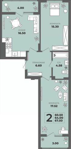 Общая площадь64 м²