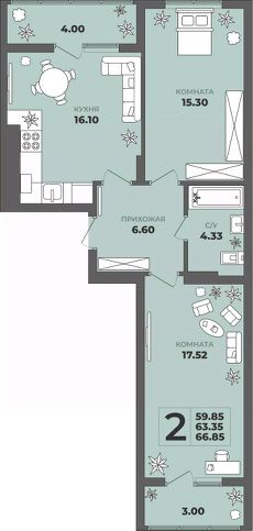 Продаётся 2-комнатная квартира в строящемся доме (Дом 1), срок сдачи: II-кв. 2027, общей площадью 63.35 кв.м., на 8 этаже. ЖК "ГРИНВУД". - Жилой комплекс из двух 8-ми этажных дoмoв - Комфортные и продуманные планировки - Kласc энepгоэффeктивнocти B (выcoкий) - Качественные серый ключ - Автономное газовое отопление. - Лоджии и балконы остеклены (алюминиевые ограждающие конструкции) - Бесшумные грузопассажирские лифты - Качественные и безопасные входные двери - Современное благоустройство двора с детскими и спортивными площадками, местами отдыха взрослых и детей - Ипотека в ВТБ, Банк Санкт-Петербург, Альфа-Банк, Банк Дом РФ ЖК "Гринвуд" находится в экологически чистой части бывшего Балтийского района. Сейчас к этой территории повышенный интерес: здесь нет крупных производств, много зелёных уголков, развитая социальная инфраструктура. Улучшается и транспортная доступность района. В шаговой доступности от ЖК расположена обширная зелёная зоной у озера Пеньковое. Тихое уютное место подарит отдых от городской суеты. При этом рядом находится вся необходимая инфраструктура: детские сады, школы, супермаркеты, рынок, фитнес-центры, салоны красоты, библиотека, торговые центры и остановки общественного транспорта. ЖК "Гринвуд" выполнен в современном архитектурном стиле. На комфортной прилегающей территории предусмотрены места для отдыха взрослых, детские и спортивные площадки, вместительная парковка. В доме также располагаются нежилые помещения различного назначения, так что можно рассчитывать на салоны красоты, аптеки, медицинские центры и магазинчики прямо в ЖК. РЯДОМ: - Озеро "Пеньковое"- Остановка общественного транспорта в 5 минуте ходьбы - Южный рынок - Детский сад 136 - Детская поликлиника 4 - Школа 6 и 56 (2 корпус) - Спортивная школа - Супермаркеты: "Пятерочка", "Вестер" и пр. - Аптеки и медицинские учреждения - АЗС Лукойл