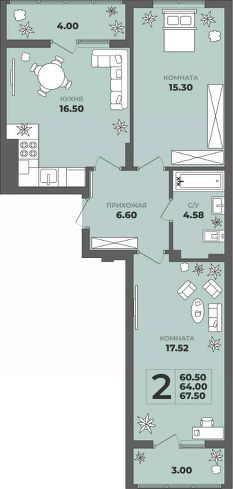 Общая площадь64 м²