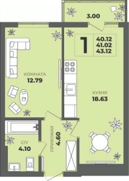 Продаётся 1-комнатная квартира в строящемся доме (Дом 2), срок сдачи: II-кв. 2027, общей площадью 41.02 кв.м., на 4 этаже. ЖК "ГРИНВУД".