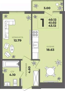 Продаётся 1-комнатная квартира в строящемся доме (Дом 2), срок сдачи: II-кв. 2027, общей площадью 41.02 кв.м., на 7 этаже. ЖК "ГРИНВУД".