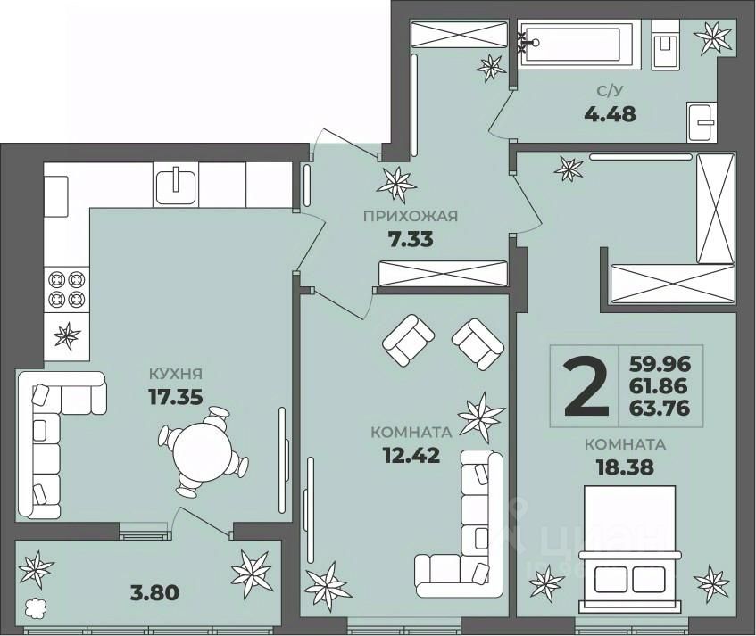 Продаётся 2-комнатная квартира в строящемся доме (Дом 2), срок сдачи: II-кв. 2027, общей площадью 61.86 кв.м., на 7 этаже. ЖК "ГРИНВУД". - Жилой комплекс из двух 8-ми этажных дoмoв - Комфортные и продуманные планировки - Kласc энepгоэффeктивнocти B (выcoкий) - Качественные серый ключ - Автономное газовое отопление. - Лоджии и балконы остеклены (алюминиевые ограждающие конструкции) - Бесшумные грузопассажирские лифты - Качественные и безопасные входные двери - Современное благоустройство двора с детскими и спортивными площадками, местами отдыха взрослых и детей - Ипотека в ВТБ, Банк Санкт-Петербург, Альфа-Банк, Банк Дом РФ ЖК "Гринвуд" находится в экологически чистой части бывшего Балтийского района. Сейчас к этой территории повышенный интерес: здесь нет крупных производств, много зелёных уголков, развитая социальная инфраструктура. Улучшается и транспортная доступность района. В шаговой доступности от ЖК расположена обширная зелёная зоной у озера Пеньковое. Тихое уютное место подарит отдых от городской суеты. При этом рядом находится вся необходимая инфраструктура: детские сады, школы, супермаркеты, рынок, фитнес-центры, салоны красоты, библиотека, торговые центры и остановки общественного транспорта. ЖК "Гринвуд" выполнен в современном архитектурном стиле. На комфортной прилегающей территории предусмотрены места для отдыха взрослых, детские и спортивные площадки, вместительная парковка. В доме также располагаются нежилые помещения различного назначения, так что можно рассчитывать на салоны красоты, аптеки, медицинские центры и магазинчики прямо в ЖК. РЯДОМ: - Озеро "Пеньковое"- Остановка общественного транспорта в 5 минуте ходьбы - Южный рынок - Детский сад 136 - Детская поликлиника 4 - Школа 6 и 56 (2 корпус) - Спортивная школа - Супермаркеты: "Пятерочка", "Вестер" и пр. - Аптеки и медицинские учреждения - АЗС Лукойл