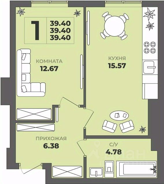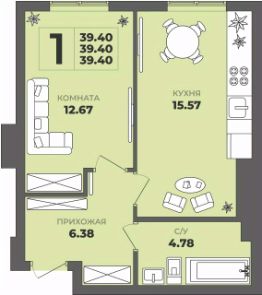 Общая площадь39,4 м²