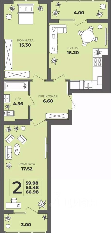 Продаётся 2-комнатная квартира в строящемся доме (Дом 1), срок сдачи: II-кв. 2027, общей площадью 63.48 кв.м., на 3 этаже. ЖК "ГРИНВУД". - Жилой комплекс из двух 8-ми этажных дoмoв - Комфортные и продуманные планировки - Kласc энepгоэффeктивнocти B (выcoкий) - Качественные серый ключ - Автономное газовое отопление. - Лоджии и балконы остеклены (алюминиевые ограждающие конструкции) - Бесшумные грузопассажирские лифты - Качественные и безопасные входные двери - Современное благоустройство двора с детскими и спортивными площадками, местами отдыха взрослых и детей - Ипотека в ВТБ, Банк Санкт-Петербург, Альфа-Банк, Банк Дом РФ ЖК "Гринвуд" находится в экологически чистой части бывшего Балтийского района. Сейчас к этой территории повышенный интерес: здесь нет крупных производств, много зелёных уголков, развитая социальная инфраструктура. Улучшается и транспортная доступность района. В шаговой доступности от ЖК расположена обширная зелёная зоной у озера Пеньковое. Тихое уютное место подарит отдых от городской суеты. При этом рядом находится вся необходимая инфраструктура: детские сады, школы, супермаркеты, рынок, фитнес-центры, салоны красоты, библиотека, торговые центры и остановки общественного транспорта. ЖК "Гринвуд" выполнен в современном архитектурном стиле. На комфортной прилегающей территории предусмотрены места для отдыха взрослых, детские и спортивные площадки, вместительная парковка. В доме также располагаются нежилые помещения различного назначения, так что можно рассчитывать на салоны красоты, аптеки, медицинские центры и магазинчики прямо в ЖК. РЯДОМ: - Озеро "Пеньковое"- Остановка общественного транспорта в 5 минуте ходьбы - Южный рынок - Детский сад 136 - Детская поликлиника 4 - Школа 6 и 56 (2 корпус) - Спортивная школа - Супермаркеты: "Пятерочка", "Вестер" и пр. - Аптеки и медицинские учреждения - АЗС Лукойл