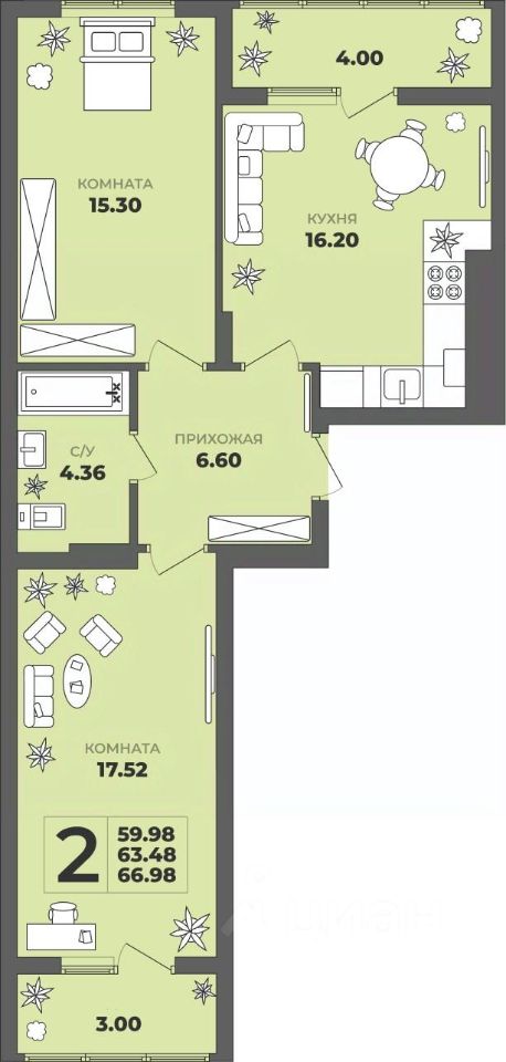 Продаётся 2-комнатная квартира в строящемся доме (Дом 1), срок сдачи: II-кв. 2027, общей площадью 63.48 кв.м., на 6 этаже. ЖК "ГРИНВУД". - Жилой комплекс из двух 8-ми этажных дoмoв - Комфортные и продуманные планировки - Kласc энepгоэффeктивнocти B (выcoкий) - Качественные серый ключ - Автономное газовое отопление. - Лоджии и балконы остеклены (алюминиевые ограждающие конструкции) - Бесшумные грузопассажирские лифты - Качественные и безопасные входные двери - Современное благоустройство двора с детскими и спортивными площадками, местами отдыха взрослых и детей - Ипотека в ВТБ, Банк Санкт-Петербург, Альфа-Банк, Банк Дом РФ ЖК "Гринвуд" находится в экологически чистой части бывшего Балтийского района. Сейчас к этой территории повышенный интерес: здесь нет крупных производств, много зелёных уголков, развитая социальная инфраструктура. Улучшается и транспортная доступность района. В шаговой доступности от ЖК расположена обширная зелёная зоной у озера Пеньковое. Тихое уютное место подарит отдых от городской суеты. При этом рядом находится вся необходимая инфраструктура: детские сады, школы, супермаркеты, рынок, фитнес-центры, салоны красоты, библиотека, торговые центры и остановки общественного транспорта. ЖК "Гринвуд" выполнен в современном архитектурном стиле. На комфортной прилегающей территории предусмотрены места для отдыха взрослых, детские и спортивные площадки, вместительная парковка. В доме также располагаются нежилые помещения различного назначения, так что можно рассчитывать на салоны красоты, аптеки, медицинские центры и магазинчики прямо в ЖК. РЯДОМ: - Озеро "Пеньковое"- Остановка общественного транспорта в 5 минуте ходьбы - Южный рынок - Детский сад 136 - Детская поликлиника 4 - Школа 6 и 56 (2 корпус) - Спортивная школа - Супермаркеты: "Пятерочка", "Вестер" и пр. - Аптеки и медицинские учреждения - АЗС Лукойл