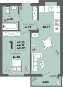 Общая площадь44,12 м²