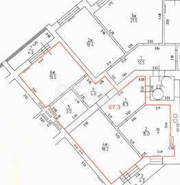 Общая площадь квартиры вместе c балконом — 67.3 м2.