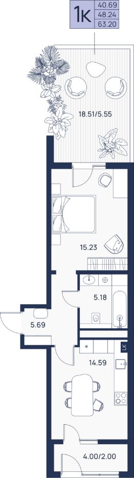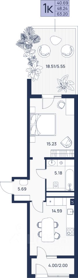 Продаётся 1-комнатная квартира в строящемся доме (Дом 2), срок сдачи: II-кв. 2027, общей площадью 63.2 кв.м., на 1 этаже. Новый жилой комплекс "Источник" от застройщика "КПД-Калининград" расположен по адресу: Калининградская обл., пос. Родники, ул. Калининградская.