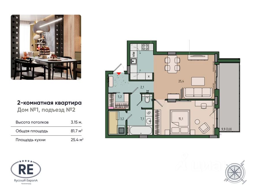 Продаётся 1-комнатная квартира в строящемся доме (Вдохновение (Дом 6, корпус 1)), срок сдачи: IV-кв. 2026, общей площадью 81.7 кв.м., на 6 этаже. Эпохальным событием в градостроении станет строительство первого в России Нарру Сіtу — Счастливого Города под названием "RусскаЯ ЕвропА". Новый экоквартал комфорт-класса на площади более 20 гектаров. Новый уровень комфортамногоэтажной застройки. От создателей Цветного Бульвара жилого комплекса, удостоенного множества наград, в том числе Федеральной премии URBAN AWARDS 2018 "Лучший региональный жилой комплекс комфорт-класса".Каждая квартира — индивидуальный проект, выполненный по европейским стандартам эргономики жилья. Энергосберегающее панорамное остекление открывает живописные виды и создает солнечное настроение, окна во всю стену от потолка до пола наполняют помещения светом. Тройной стеклопакет в алюминиевом профиле обеспечивает звуко- и теплоизоляцию. Высота потолков от 3-метров, рациональное размещение дверей, окон и вентканалов обеспечивают правильную циркуляцию воздуха в помещениях, способствуя созданию здорового микроклимата и экономию средств на отоплении и кондиционировании.Просторные балконы-террасы шириной от 2м — комфортабельное пространство, по сути, летняя гостиная + столовая + лаунж-зона — место отдыха для всей семьи и уединенного релакса. Домашняя сауна в ванной комнате — свежее решение и практичный вариант для истинных любителей банного отдыха и оздоровительных процедур в любое удобное время у себя дома."Условно грязная зона" прихожей отделена от чистой, за "пограничной чертой" — домофон и гостевой туалет, также выполняющий функции прачечной с местом для хранения бытовой химии, которую небезопасно держать в ванной. Третий кран с питьевой водой на кухне. Автономное отопление регулируется компактным теплопунктом в квартире, все громоздкое оборудование вынесено в отдельную придомовую газовую котельную, газа в квартирах нет.В первом жилом комплексе "Ласточкино гнездо" проекта "RусскаЯ ЕвропА" объединена архитектурная стилистика городов России и соседствующих европейских. Создана совершенно новая среда, где здания и природный ландшафт становятся единым целым. Это положительно сказывается не только на архитектурном облике всего комплекса, но и позволит в будущем каждому жителю почувствовать тесную связь и единение с природой.Комплекс "Династия". Чистота и гармония ритма архитектурного ансамбля, экологичность застройки в приоритете:- Закрытый трафик автомобилей с полной изоляцией зоны автостоянок транспорта от жилой зоны микрорайона;- Использование дождевой воды на технологические нужды в эксплуатации как квартир, так и комплекса в целом;- Использование возобновляемых источников энергии;- Современные, инновационные решения по функциональности пространства планировочных решений квартир;- Эксплуатируемые кровли с панорамными видами, оборудованные под общественные зоны отдыха.Эксперты строительной отрасли и ведущие архитекторы региона по праву называют проект "RусскаЯ ЕвропА" самым большим и з
