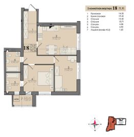 Продаётся 2-комнатная квартира в строящемся доме (Дом 1), срок сдачи: I-кв. 2027, общей площадью 71.91 кв.м., на 2 этаже. Новый жилой дом от Специализированного застройщика "КалининградНефтеСтрой" расположен в г. Калининград на ул. Бассейная.