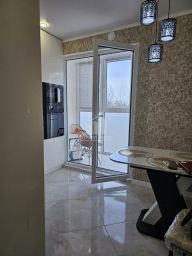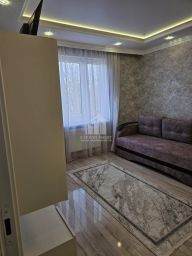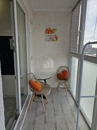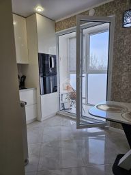 В квартире выполнен прекрасный ремонт из качественных материалов, поэтому можно сразу заезжать и жить. Окна выходят на улицу, с лоджии, оборудованной для отдыха, днем открывпется прекрасный вид на зеленый лесок, а вечером на ночной город.