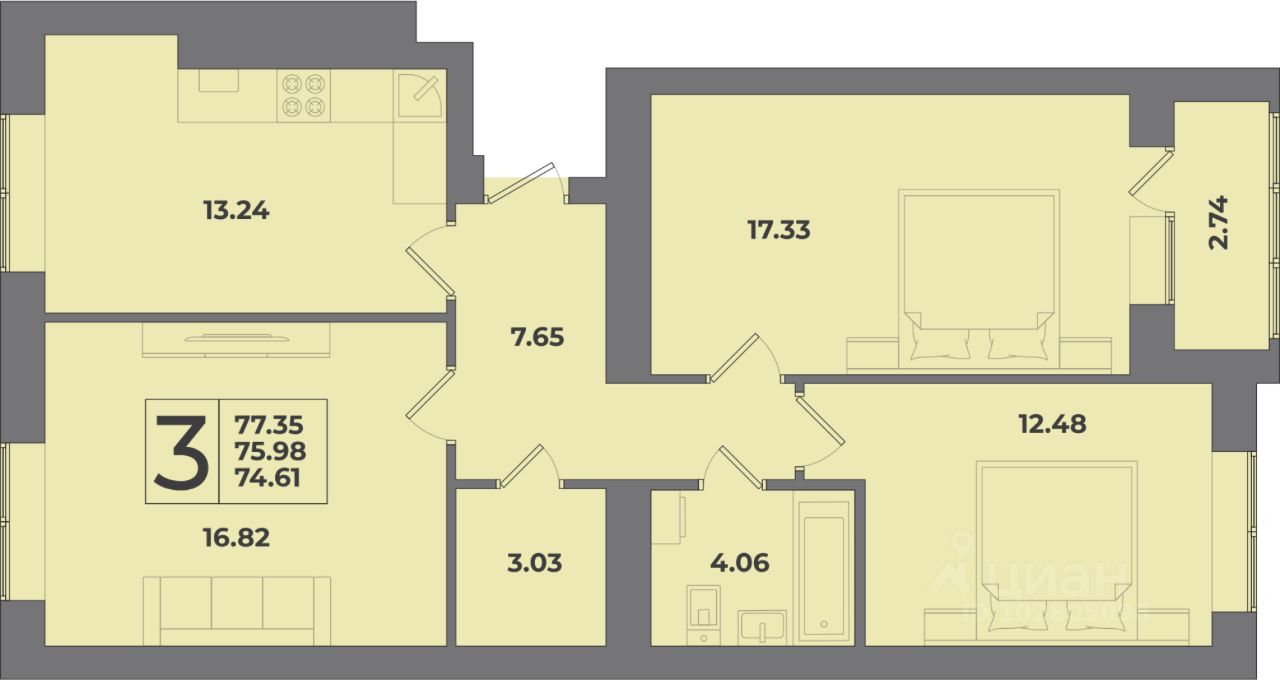 Просторные одно-, двух- и трёхкомнатные квартиры с панорамными лоджиями, продуманными планировками и отделкой "серый ключ". Выбирайте то, что подходит именно вам!