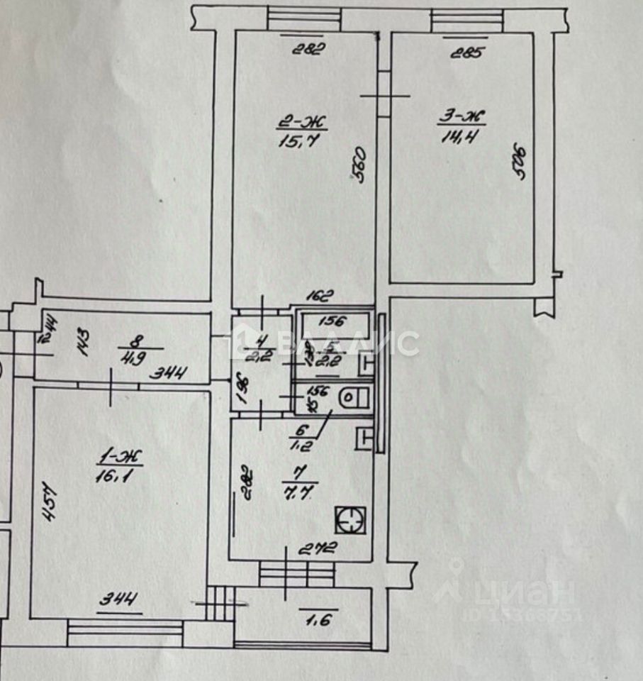 Кирпичный дом 1977г. На площадке три квартиры. Стороны света восток и запад.