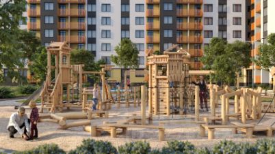 В центре комплекса расположен пруд, вокруг которого будет организована благоустроенная точка притяжения жителей всего комплекса, с большой детской и спортивной площадкой и зоной отдыха для взрослых.