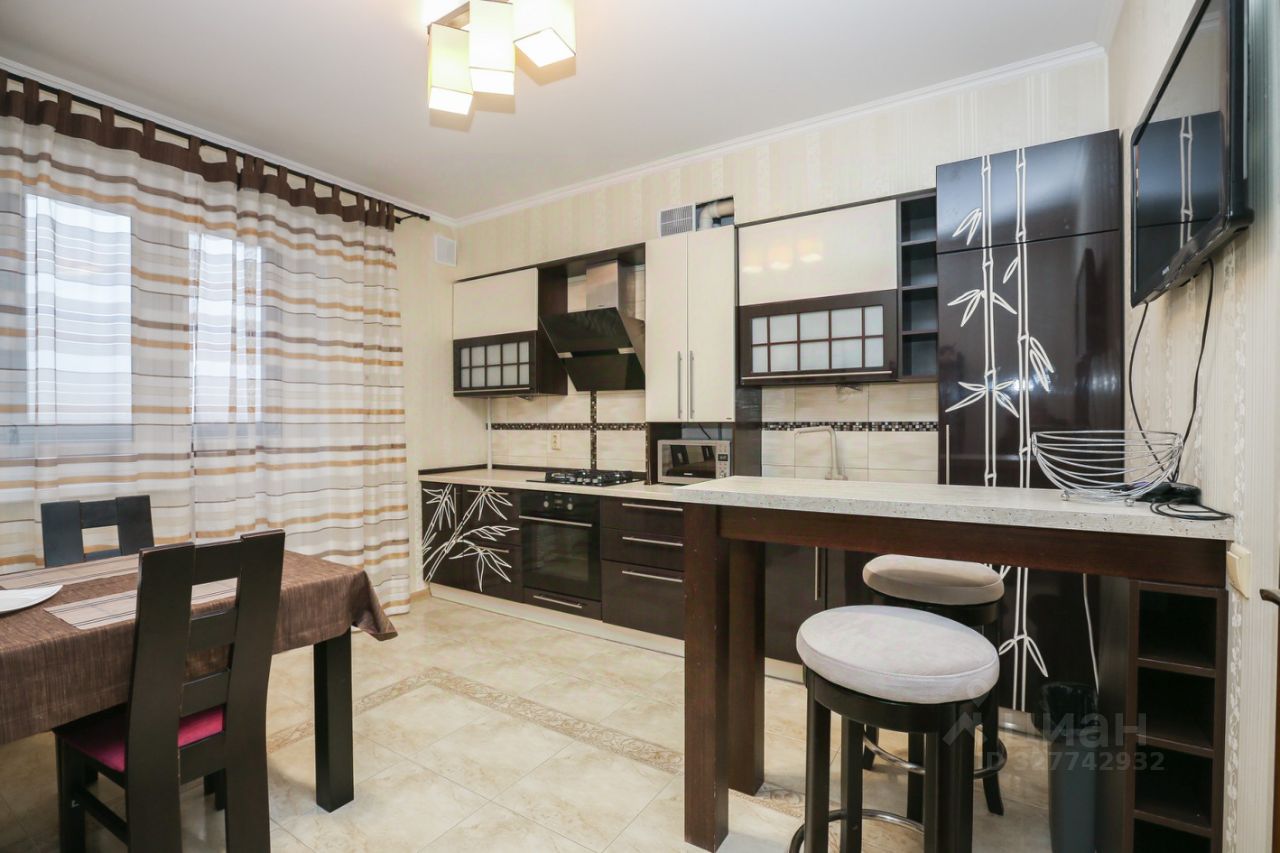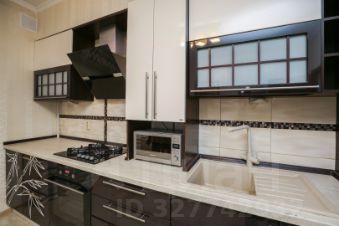 Современная кухня: Кухня оборудована стильным встроенным гарнитуром и всей необходимой бытовой техникой, готовая к вашим кулинарным шедеврам.