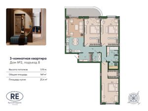 Продаётся 3-комнатная квартира в строящемся доме (Вдохновение (Дом 6, корпус 1)), срок сдачи: IV-кв. 2026, общей площадью 149 кв.м., на 7 этаже. Эпохальным событием в градостроении станет строительство первого в России Нарру Сіtу — Счастливого Города под названием "RусскаЯ ЕвропА". Новый экоквартал комфорт-класса на площади более 20 гектаров. Новый уровень комфортамногоэтажной застройки. От создателей Цветного Бульвара жилого комплекса, удостоенного множества наград, в том числе Федеральной премии URBAN AWARDS 2018 "Лучший региональный жилой комплекс комфорт-класса".Каждая квартира — индивидуальный проект, выполненный по европейским стандартам эргономики жилья. Энергосберегающее панорамное остекление открывает живописные виды и создает солнечное настроение, окна во всю стену от потолка до пола наполняют помещения светом. Тройной стеклопакет в алюминиевом профиле обеспечивает звуко- и теплоизоляцию. Высота потолков от 3-метров, рациональное размещение дверей, окон и вентканалов обеспечивают правильную циркуляцию воздуха в помещениях, способствуя созданию здорового микроклимата и экономию средств на отоплении и кондиционировании.Просторные балконы-террасы шириной от 2м — комфортабельное пространство, по сути, летняя гостиная + столовая + лаунж-зона — место отдыха для всей семьи и уединенного релакса. Домашняя сауна в ванной комнате — свежее решение и практичный вариант для истинных любителей банного отдыха и оздоровительных процедур в любое удобное время у себя дома."Условно грязная зона" прихожей отделена от чистой, за "пограничной чертой" — домофон и гостевой туалет, также выполняющий функции прачечной с местом для хранения бытовой химии, которую небезопасно держать в ванной. Третий кран с питьевой водой на кухне. Автономное отопление регулируется компактным теплопунктом в квартире, все громоздкое оборудование вынесено в отдельную придомовую газовую котельную, газа в квартирах нет.В первом жилом комплексе "Ласточкино гнездо" проекта "RусскаЯ ЕвропА" объединена архитектурная стилистика городов России и соседствующих европейских. Создана совершенно новая среда, где здания и природный ландшафт становятся единым целым. Это положительно сказывается не только на архитектурном облике всего комплекса, но и позволит в будущем каждому жителю почувствовать тесную связь и единение с природой.Комплекс "Династия". Чистота и гармония ритма архитектурного ансамбля, экологичность застройки в приоритете:- Закрытый трафик автомобилей с полной изоляцией зоны автостоянок транспорта от жилой зоны микрорайона;- Использование дождевой воды на технологические нужды в эксплуатации как квартир, так и комплекса в целом;- Использование возобновляемых источников энергии;- Современные, инновационные решения по функциональности пространства планировочных решений квартир;- Эксплуатируемые кровли с панорамными видами, оборудованные под общественные зоны отдыха.Эксперты строительной отрасли и ведущие архитекторы региона по праву называют проект "RусскаЯ ЕвропА" самым большим и зн