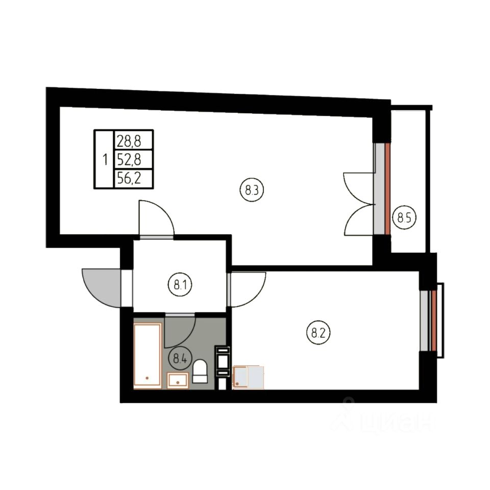 Общая площадь56,2 м²