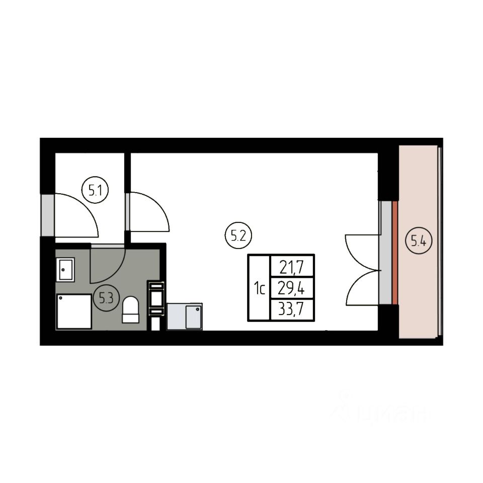 Общая площадь33,7 м²