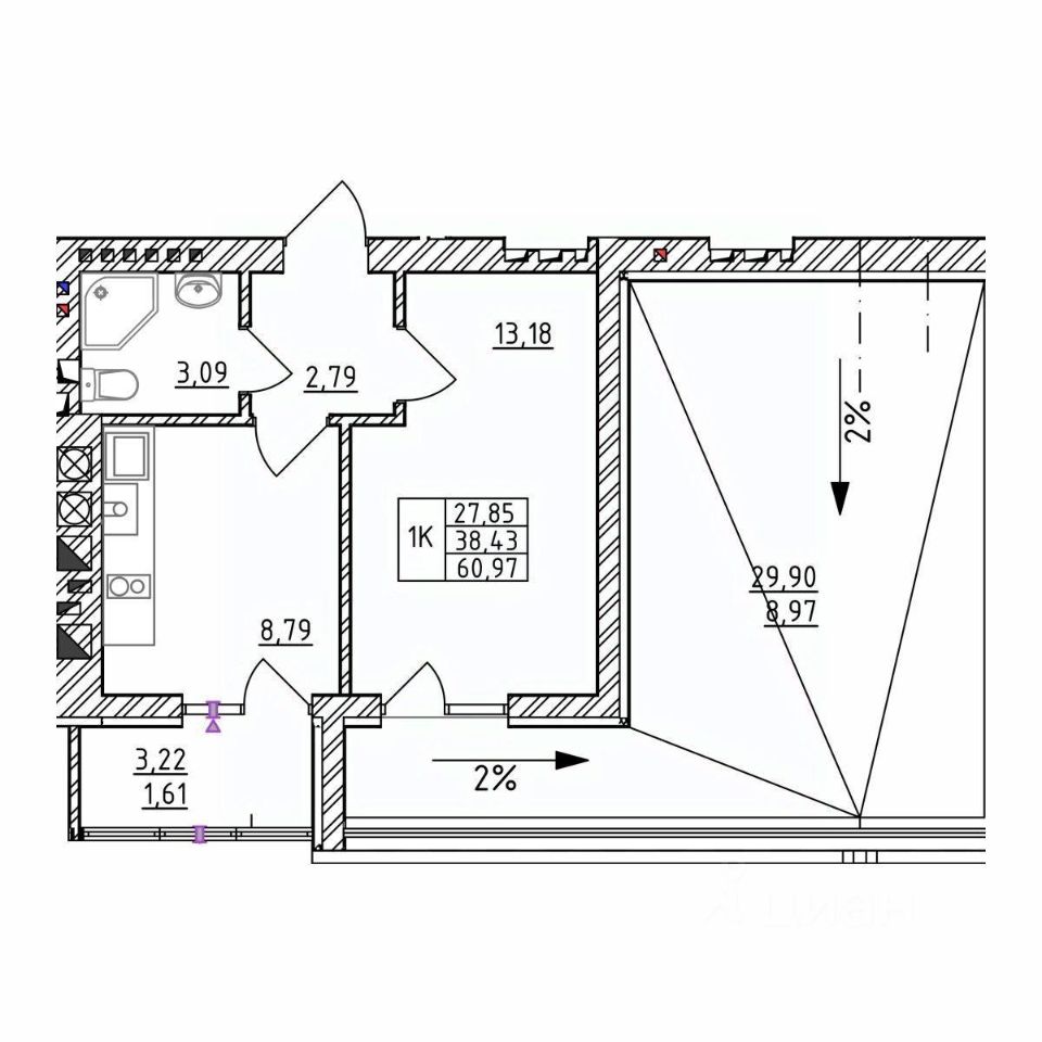 Общая площадь60,95 м²