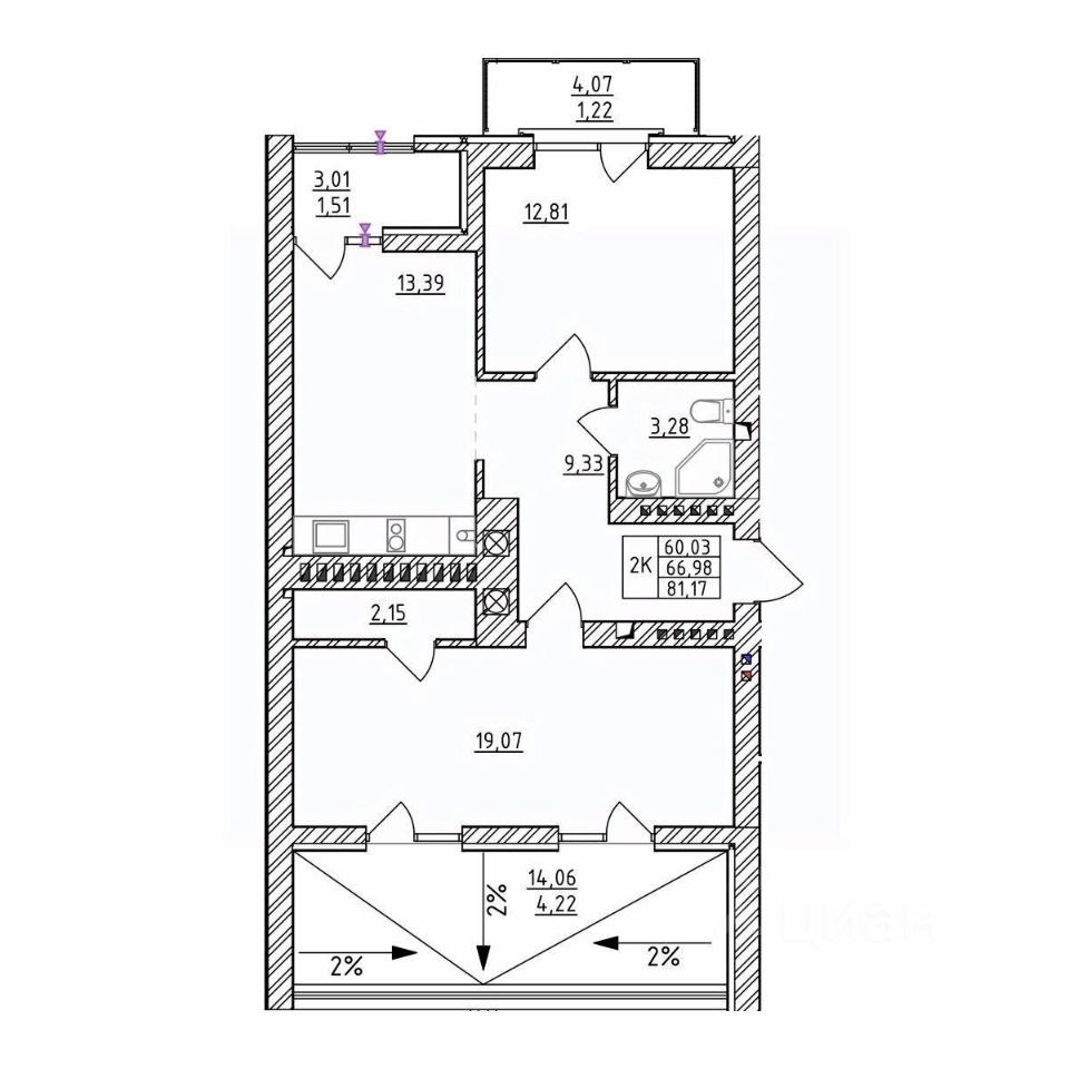 Продается 2-комн. квартира, 81,17 м²