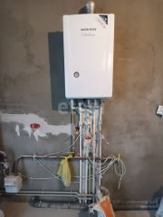 Улучшенная черновая отделка, сделана разводка электрики, сантехнической арматуры, выровнены стены под финишную шпаклёвку, завезена напольная плитка для кухни и коридора.