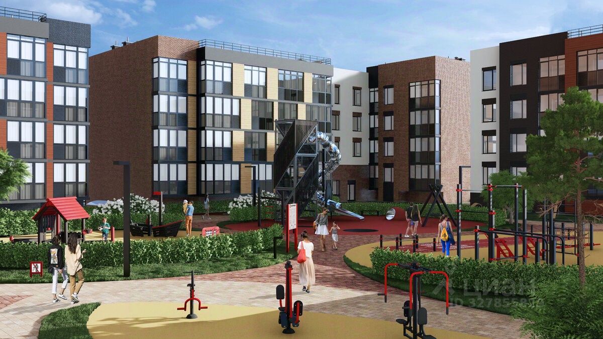 • Дизайнерские детские площадки, зоны для спорта и активного отдыха, велодорожки