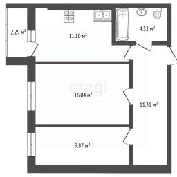 Комнаты 16,04 кв. м и 9,87 кв. м.
