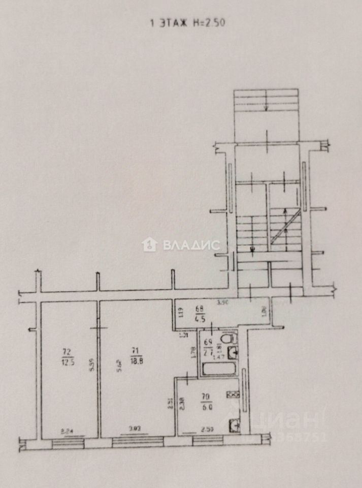 Квартира на первом этаже пятиэтажного блочного дома, построенного в 1966 году, имеет общую площадь 44,5 кв. м, жилая площадь составляет 31,3 кв. м, а площадь кухни — 6 кв. м. Высота потолков — 2,5 м.