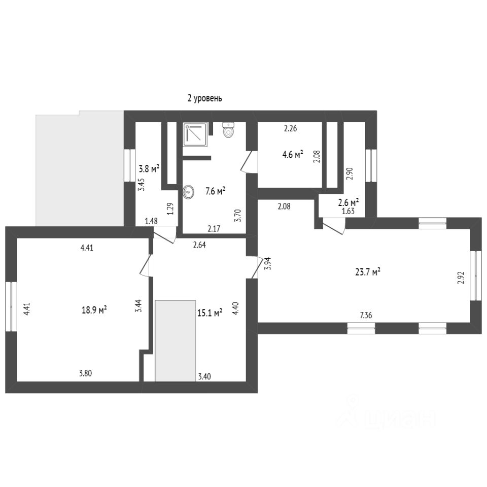 • Гостевой санузел (3,8 м²).