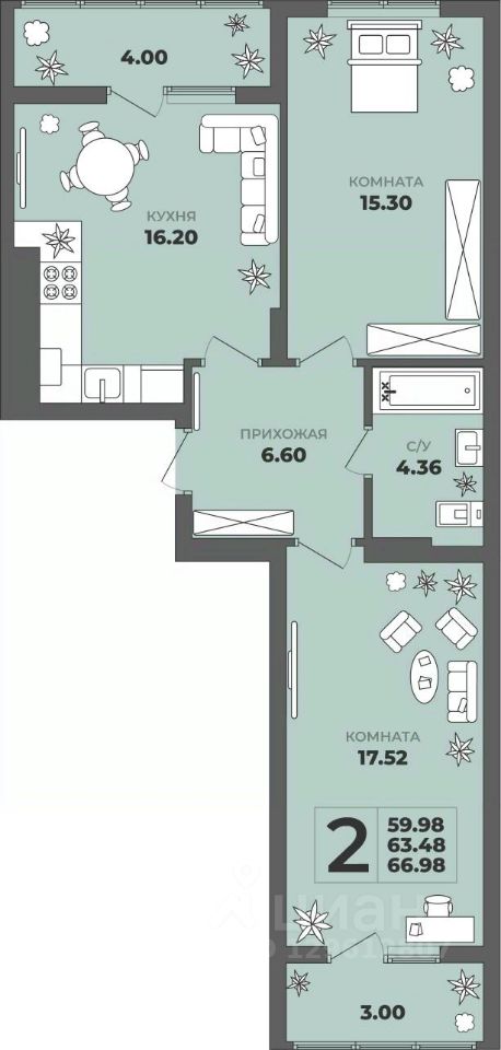 Общая площадь63,48 м²