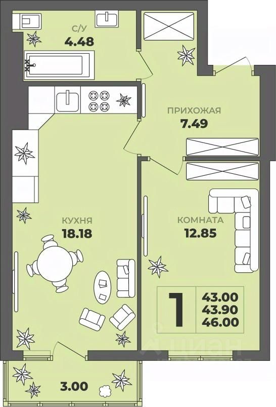 Продаётся 1-комнатная квартира в строящемся доме (Дом 2), срок сдачи: II-кв. 2027, общей площадью 43.9 кв.м., на 6 этаже. ЖК "ГРИНВУД". - Жилой комплекс из двух 8-ми этажных дoмoв - Комфортные и продуманные планировки - Kласc энepгоэффeктивнocти B (выcoкий) - Качественные серый ключ - Автономное газовое отопление. - Лоджии и балконы остеклены (алюминиевые ограждающие конструкции) - Бесшумные грузопассажирские лифты - Качественные и безопасные входные двери - Современное благоустройство двора с детскими и спортивными площадками, местами отдыха взрослых и детей - Ипотека в ВТБ, Банк Санкт-Петербург, Альфа-Банк, Банк Дом РФ ЖК "Гринвуд" находится в экологически чистой части бывшего Балтийского района. Сейчас к этой территории повышенный интерес: здесь нет крупных производств, много зелёных уголков, развитая социальная инфраструктура. Улучшается и транспортная доступность района. В шаговой доступности от ЖК расположена обширная зелёная зоной у озера Пеньковое. Тихое уютное место подарит отдых от городской суеты. При этом рядом находится вся необходимая инфраструктура: детские сады, школы, супермаркеты, рынок, фитнес-центры, салоны красоты, библиотека, торговые центры и остановки общественного транспорта. ЖК "Гринвуд" выполнен в современном архитектурном стиле. На комфортной прилегающей территории предусмотрены места для отдыха взрослых, детские и спортивные площадки, вместительная парковка. В доме также располагаются нежилые помещения различного назначения, так что можно рассчитывать на салоны красоты, аптеки, медицинские центры и магазинчики прямо в ЖК. РЯДОМ: - Озеро "Пеньковое"- Остановка общественного транспорта в 5 минуте ходьбы - Южный рынок - Детский сад 136 - Детская поликлиника 4 - Школа 6 и 56 (2 корпус) - Спортивная школа - Супермаркеты: "Пятерочка", "Вестер" и пр. - Аптеки и медицинские учреждения - АЗС Лукойл