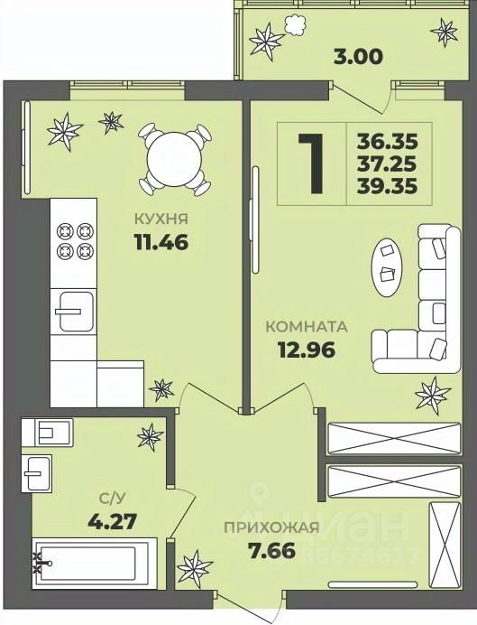 Продаётся 1-комнатная квартира в строящемся доме (Дом 2), срок сдачи: II-кв. 2027, общей площадью 37.25 кв.м., на 7 этаже. ЖК "ГРИНВУД".