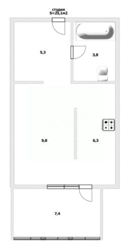 Кирпичный дом — это не только тепло и надёжность, но и гарантия того, что ваше жильё будет служить вам долгие годы. Общая площадь студии — 25,1 м², жилая площадь — 9,7 м², кухня — 6,3 м², высота потолков — 2,7 м². Совмещённый санузел, большая лоджия (7,4 м²) — всё продумано до мелочей.