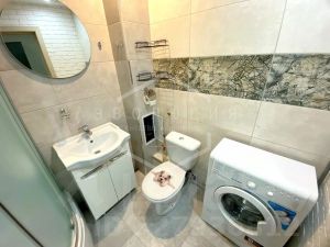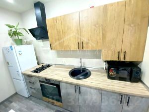 В квартире сделан евроремонт. В комнате и кухне — ламинат, санузел и лоджия — плитка. Для вас остаётся качественный и стильный кухонный гарнитур, варочная панель, духовка, холодильник, вытяжка, микроволновка, стиральная машинка, диван, телевизор, шкаф в коридоре.
