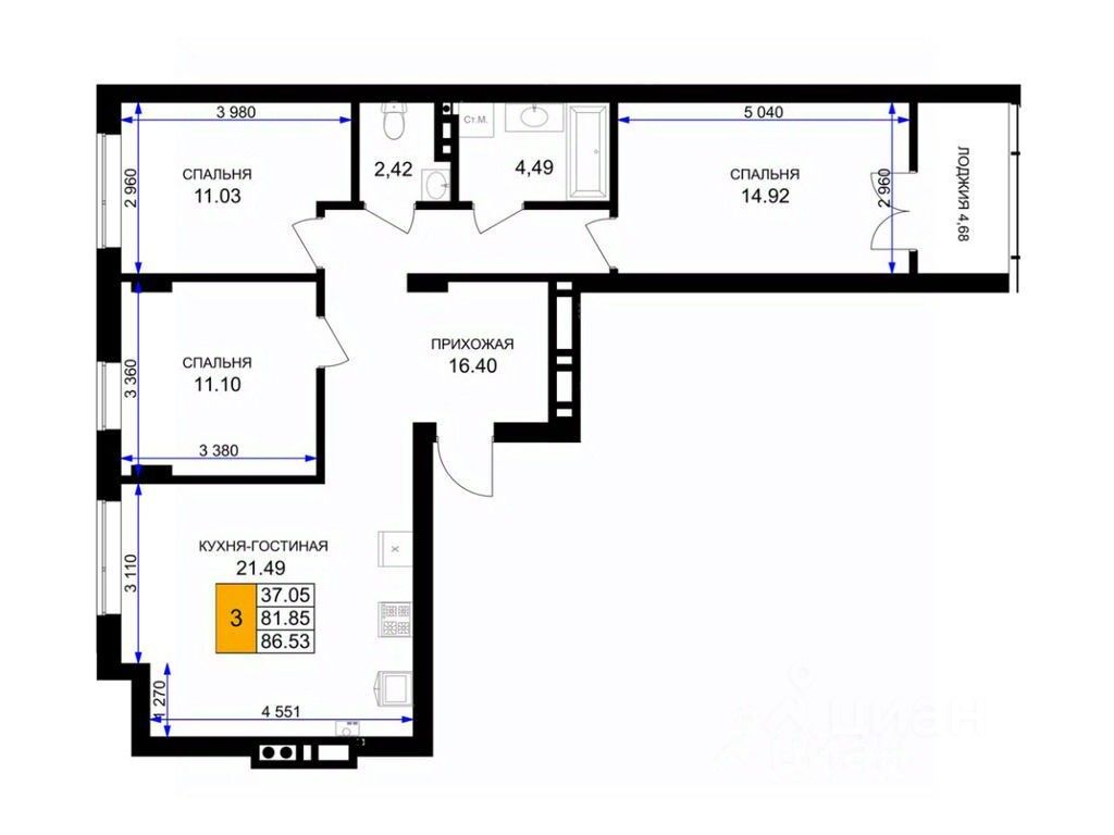 Общая площадь86,8 м²