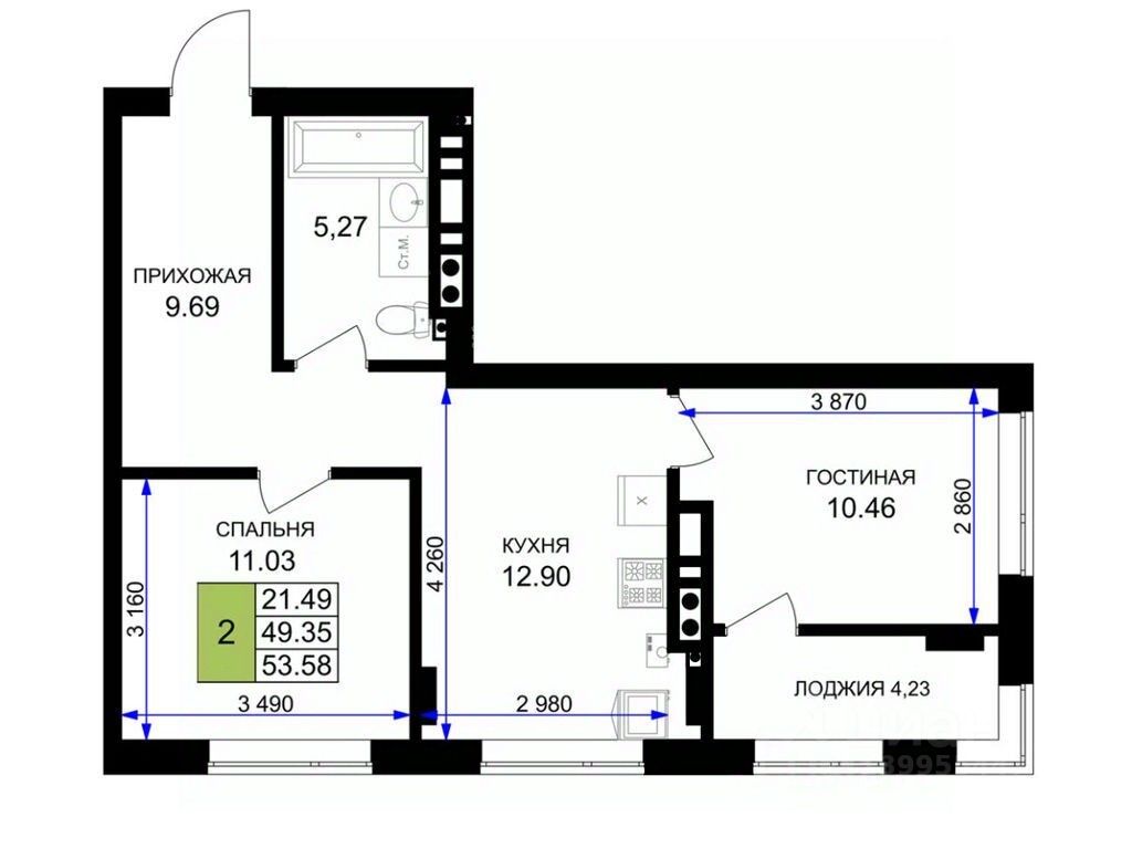 Общая площадь54,2 м²