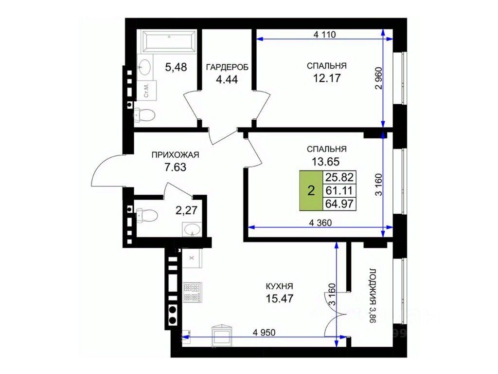 Общая площадь65,7 м²
