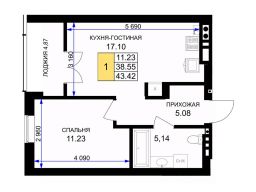 Общая площадь43,8 м²
