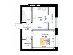 Продается 1-комн. квартира, 44,6 м²