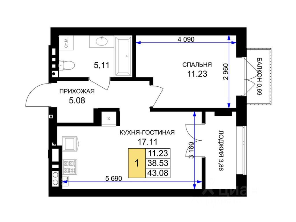 Однокомнатная квартира - это гармоничное сочетание современной планировки, естественного света и продуманной функциональности. Пространство легко зонируется на спальную и гостиную зоны, а просторная кухня с возможностью размещения полноценной обеденной группы становится центром домашнего уюта и встреч с близкими. Лоджия, выходящая из жилой зоны, расширяет полезную площадь: здесь можно организовать рабочий уголок, мини-оранжерею или уютное место для отдыха с чашкой кофе утром.