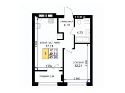 Продается 1-комн. квартира, 43,6 м²