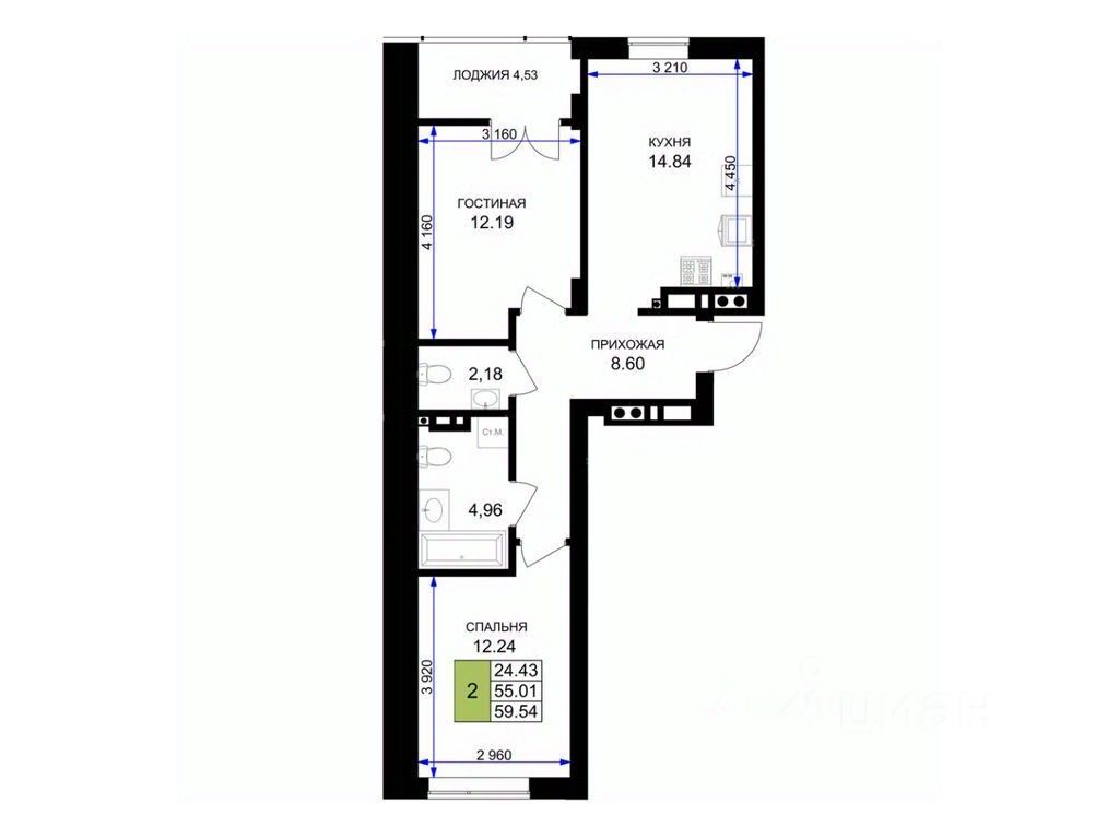 Общая площадь60,4 м²