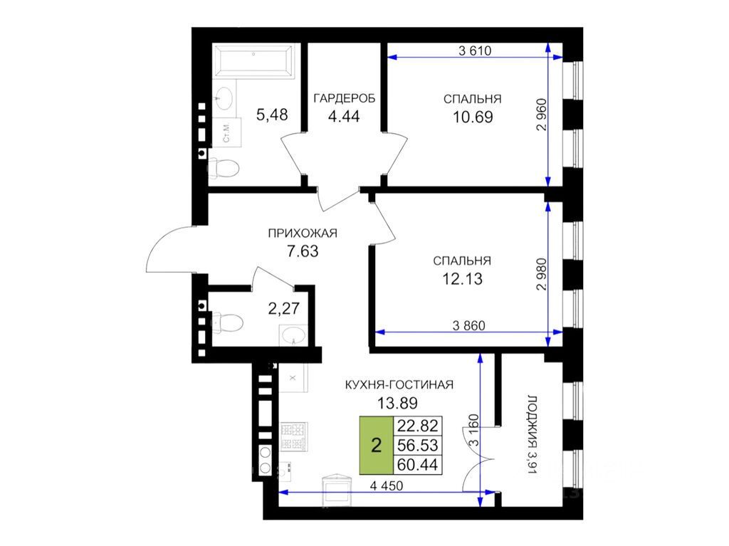 Двухкомнатная квартира - это продуманное пространство для комфортной жизни всей семьи. Две изолированные комнаты обеспечивают приватность и гибкость в зонировании: здесь легко разместить спальню, детскую, кабинет или гостиную - в зависимости от ваших потребностей. Просторная кухня вмещает полноценную обеденную зону и дополняется встроенной кладовой, где удобно хранить продукты, бытовую технику или кухонную утварь, сохраняя порядок в основной зоне. Лоджия добавляет функциональную площадь - для хранения, сушки белья или создания уютного уголка отдыха.