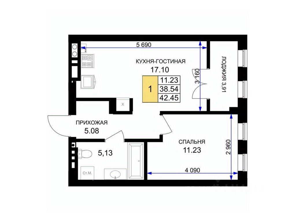 Общая площадь43,2 м²