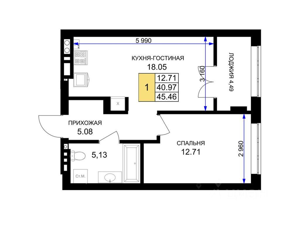 Однокомнатная квартира - это гармоничное сочетание современной планировки, естественного света и продуманной функциональности. Пространство легко зонируется на спальную и гостиную зоны, а просторная кухня с возможностью размещения полноценной обеденной группы становится центром домашнего уюта и встреч с близкими. Лоджия, выходящая из жилой зоны, расширяет полезную площадь: здесь можно организовать рабочий уголок, мини-оранжерею или уютное место для отдыха с чашкой кофе утром.