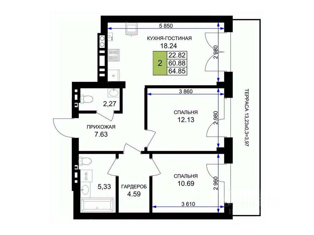 Общая площадь65,8 м²