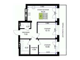 Продается 2-комн. квартира, 65,8 м²