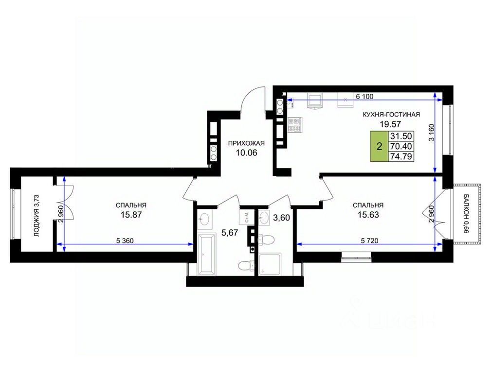 Двухкомнатная квартира - это продуманное пространство для комфортной жизни всей семьи. Две изолированные комнаты обеспечивают приватность и гибкость в зонировании: здесь легко разместить спальню, детскую, кабинет или гостиную - в зависимости от ваших потребностей. Просторная кухня вмещает полноценную обеденную зону и дополняется встроенной кладовой, где удобно хранить продукты, бытовую технику или кухонную утварь, сохраняя порядок в основной зоне. Лоджия добавляет функциональную площадь - для хранения, сушки белья или создания уютного уголка отдыха.