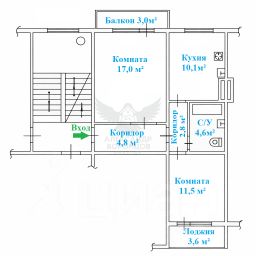 • Комнаты: 17,0 м² и 11,5 м² (изолированные);
