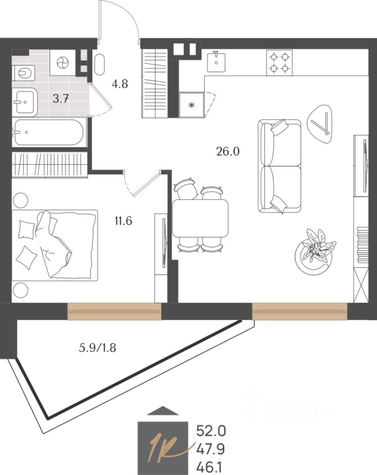 Продаётся 1-комнатная квартира в строящемся доме (Дом 1), срок сдачи: III-кв. 2027, общей площадью 47.9 кв.м., на 6 этаже. Новый жилой комплекс "Берег морской" от застройщика "Калининградстройинвест" расположен по адресу: Калининградская обл., г. Светлогорск, ул. Олимпийский бульвар.